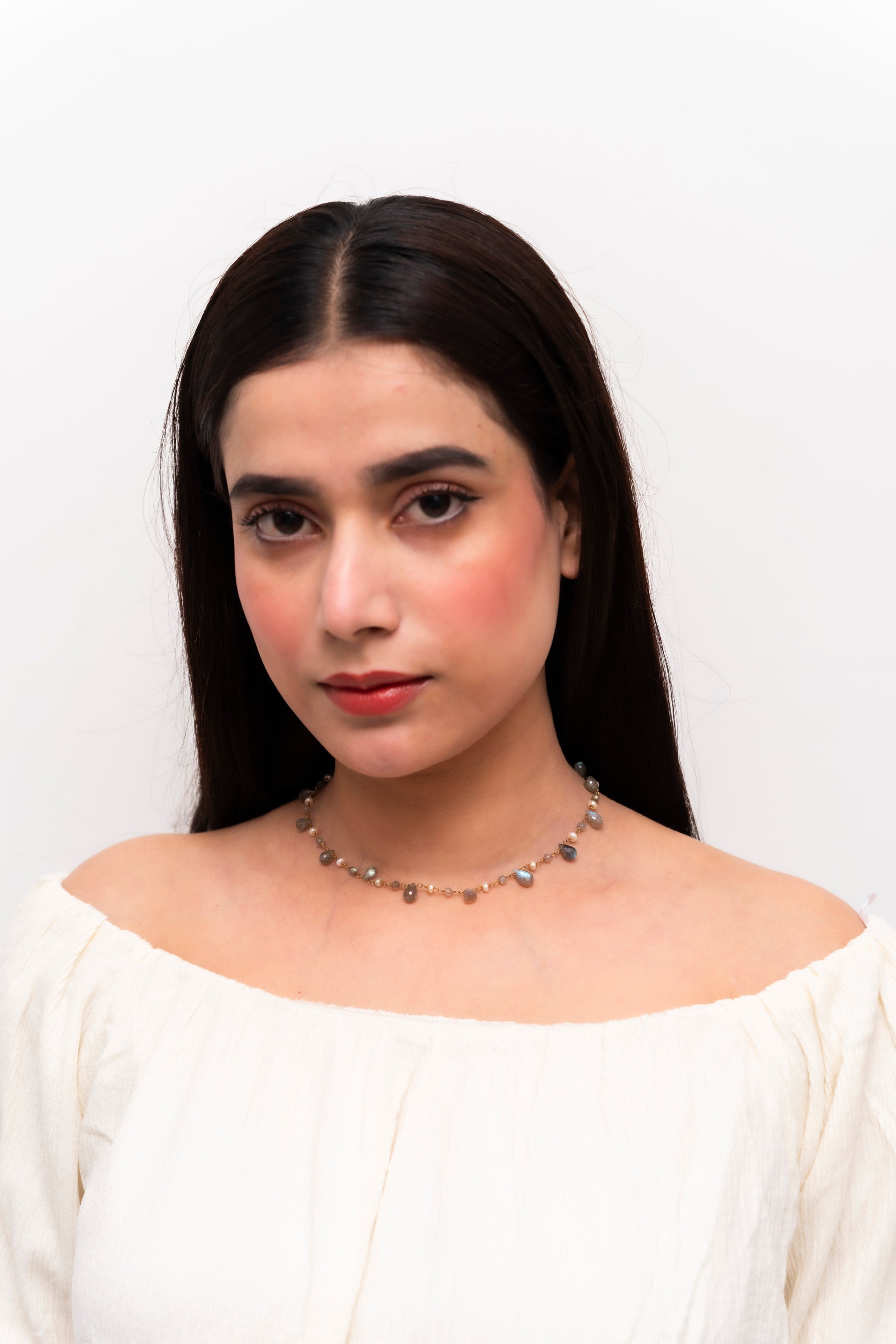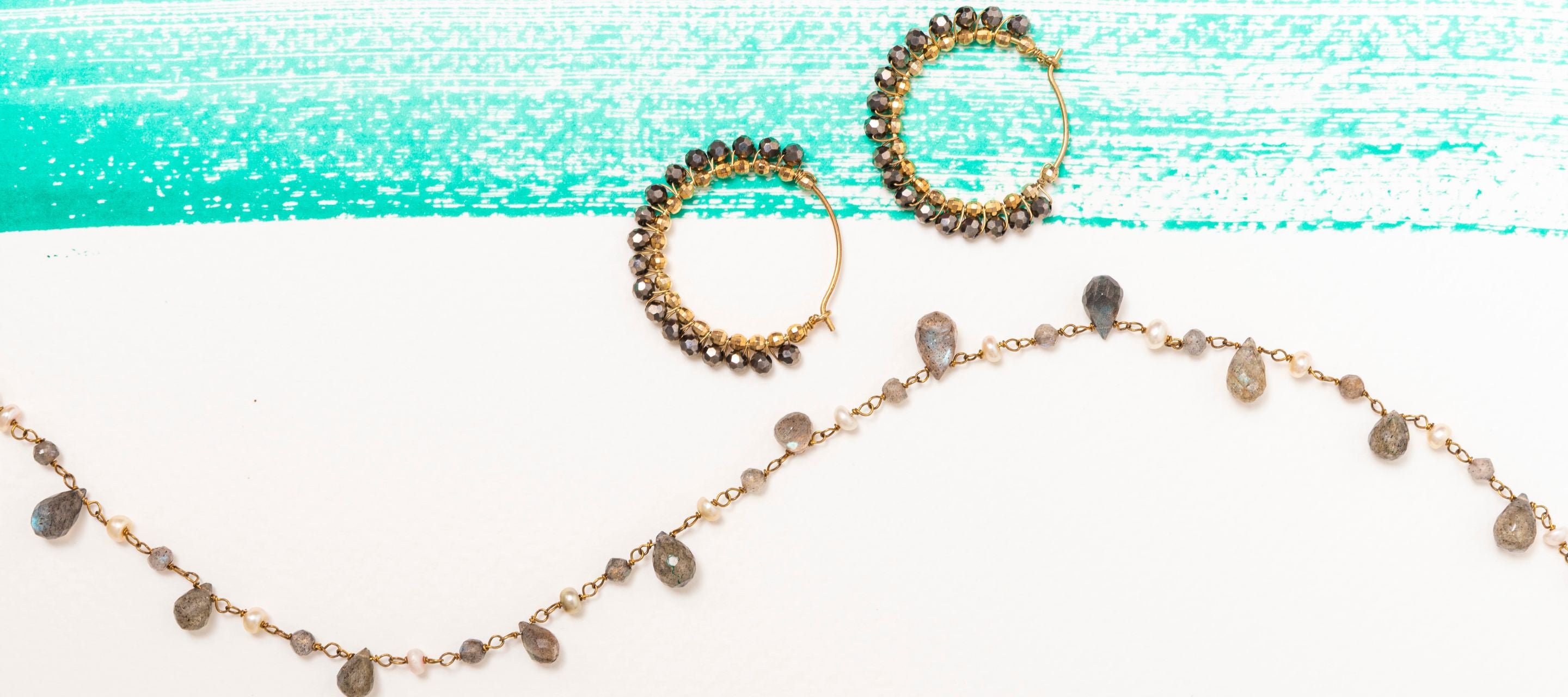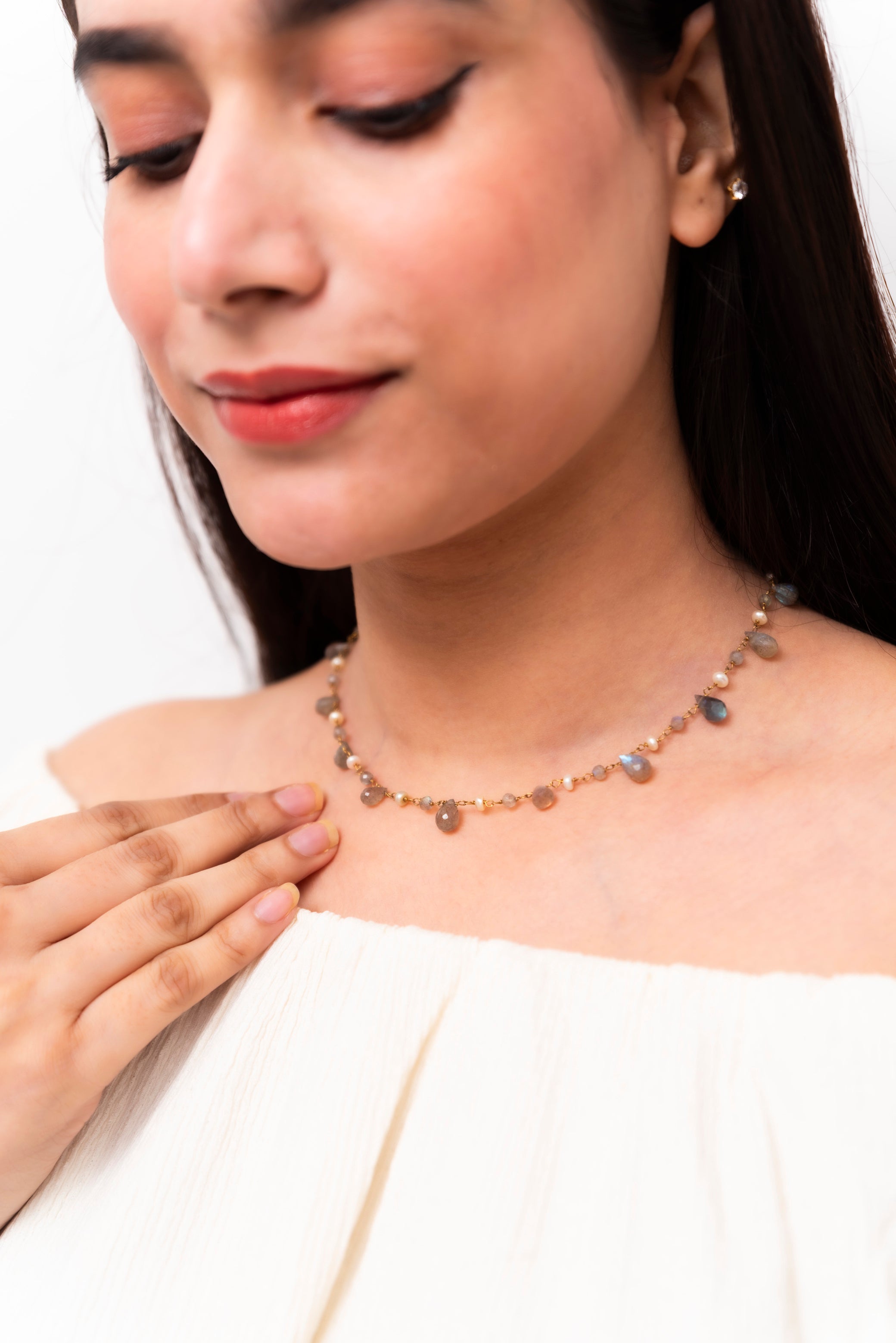 Labradorite & Pearl Wire Work Necklace and...